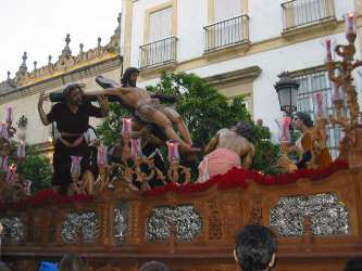 The processions start at each of the towns churches with members of the religious brotherhoods (Hermandades) carrying their floats bearing religious statues (Pasos).